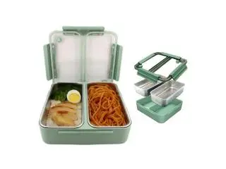 The 2 compartment lunch box from Cravista is designed for convenient meal organization with dual sections that keep different foods fresh and separated. Built with SUS304 food-grade stainless steel interior and a BPA-free exterior, it offers a safe and durable solution for everyday use. The removable tray makes cleaning simple, while the airtight silicone seal ensures leak-proof performance.