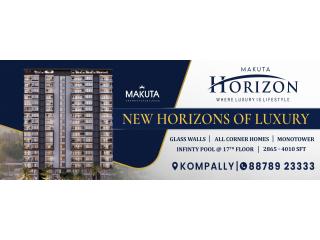 Makuta Horizon offers 3 & 4 BHK corner apartments in Kompally with glass walls, 180-ft infinity pool, top-class amenities & serene living in North Hyderabad.
