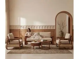 A wooden sofa set is an ideal choice for homeowners who prefer durable furniture with timeless appeal. Wooden frames offer strength and stability, making them perfect for everyday use while also adding a natural touch to the living room. This type of furniture blends easily with both modern and traditional interiors, creating a warm and inviting atmosphere.