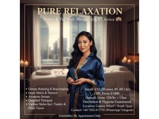 Experience the art of pure relaxation with a professional tantric full-body massage by CiCi Jessica, a British beauty with an oriental charm and an avant-garde soul. Based in Canary Wharf, South Quay, I provide a deeply relaxing and rejuvenating session designed to ease stress, tension, and fatigue while awakening your senses.