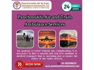 Panchmukhi Air and Train Ambulance from Chennai provides matchless medical care to the patient throughout the journey at the lowest booking charge. Using our splendid Air and Train Ambulance Service in Chennai, you can relocate your loved one safely without medical trouble.