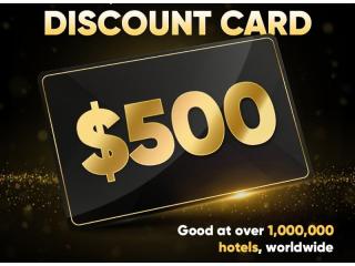I’m offering a hotel discount card valued between $100–$500 that can be used toward hotel stays at participating locations nationwide.